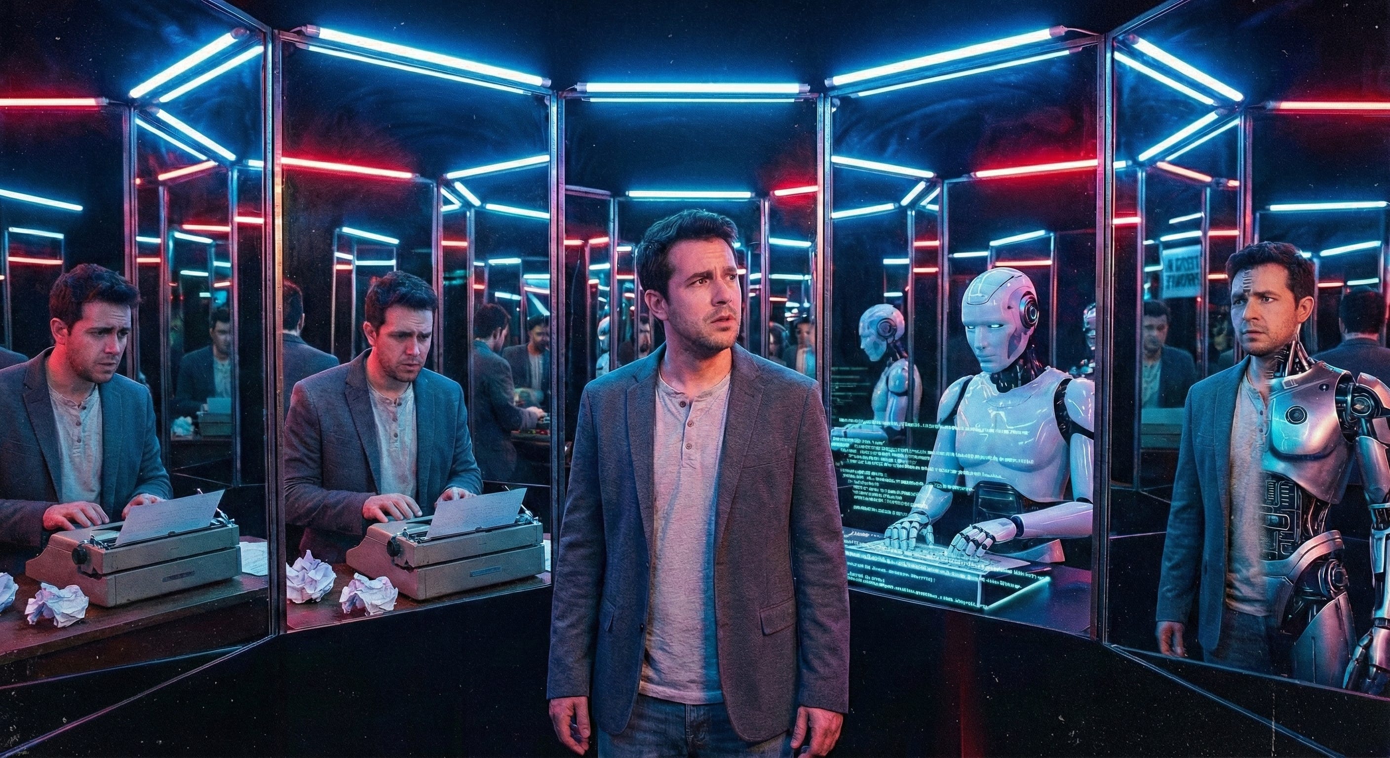 É uma crise de identidade autoral. Queremos ser lidos, mas temos medo de escrever “errado”. Aí usamos a ferramenta para corrigir, e o resultado fica “certo” demais, logo, artificial. Parece aquela casa de espelhos. A gente olha para o texto e não sabe mais se está vendo o reflexo de um humano tentando ser profissional ou de um robô tentando ser humano, ou um humano, sendo robo, e voltando a ser humano.